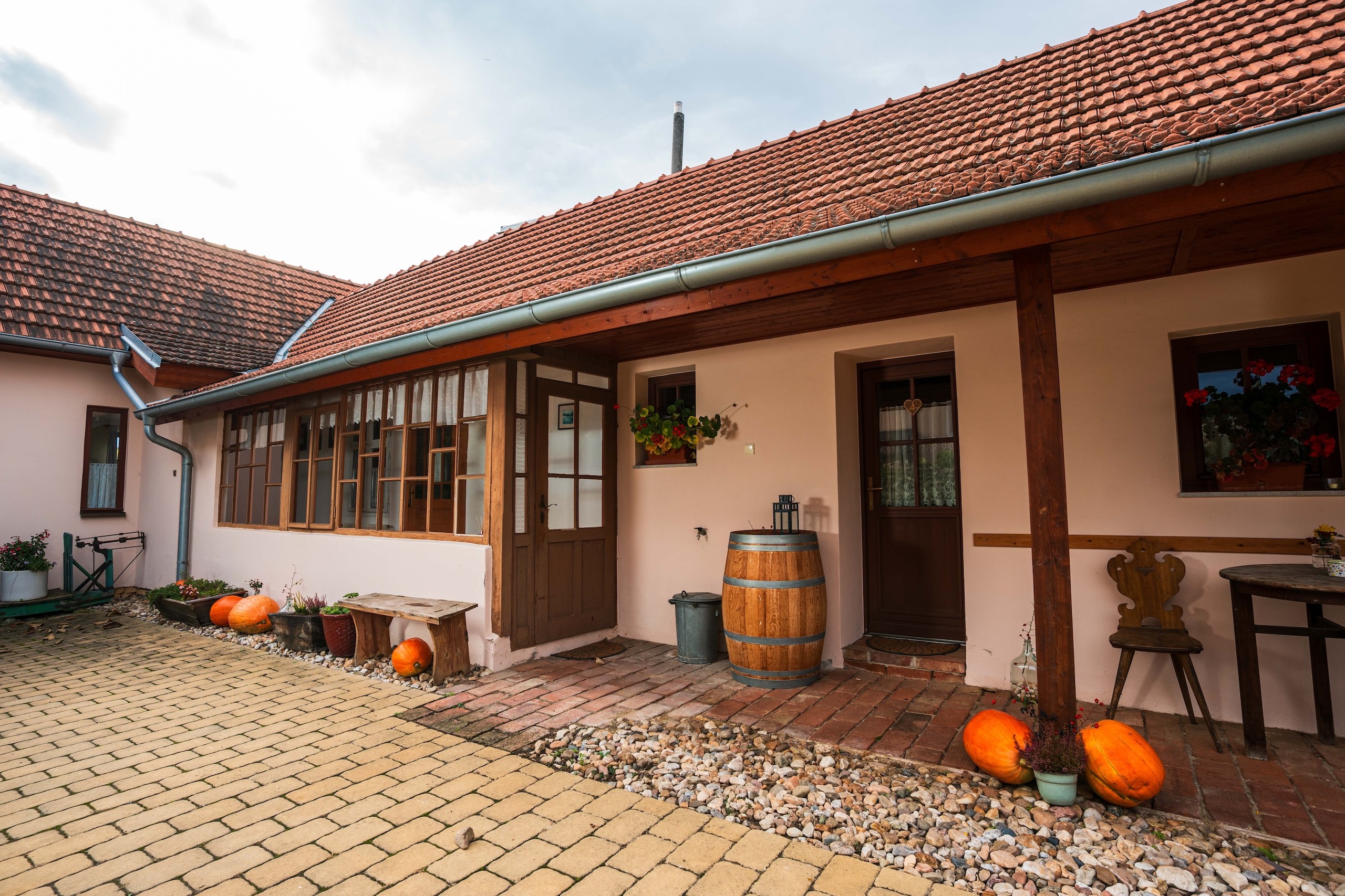 Naši přátelé a hosté s námi občas koštují velmi důkladně a proto jsme vybudovali důležité zázemí pro relaxaci a odpočinek, které k pohodovému vychutnávání vína bezpochyby patří. Náš rodinný penzion přímo sousedí s naším vinným sklípkem, takže do postele to máte doslova pár kroků.